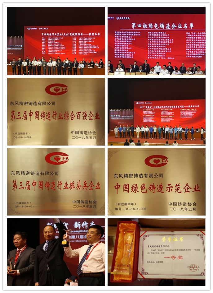【公司榮譽】東風精鑄在中國鑄造協會第十四屆年會上榮獲多項榮譽